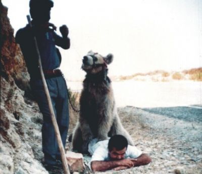 Kocaman bir ayının kollarında bizim başkan. Geçmiş ayı Hıdır dostunun karşısına.