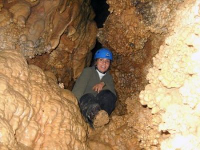 Görevli bayan arkadaş, delikli kayadan geçtikten sonra