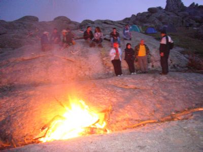 Kararan havayı,sürekli odunla beslediğimiz ateş aydınlatıyor.İçimiz ısınıyor.Türküler,şiirler okunuyor.Ve her türküde içimiz daha da ısınıyor.Zaman akıyor,akşam ilerliyor.Sanki çok zamandır bu dağdaymışız gibi rahatız..Beşparmak Dağları insana farklı bir güven duygusu veriyor.Dostluklar pekişiyor.Türküler,şiirlerin sıcaklığı ile ateşin sıcaklığı birbirine karışıyor.